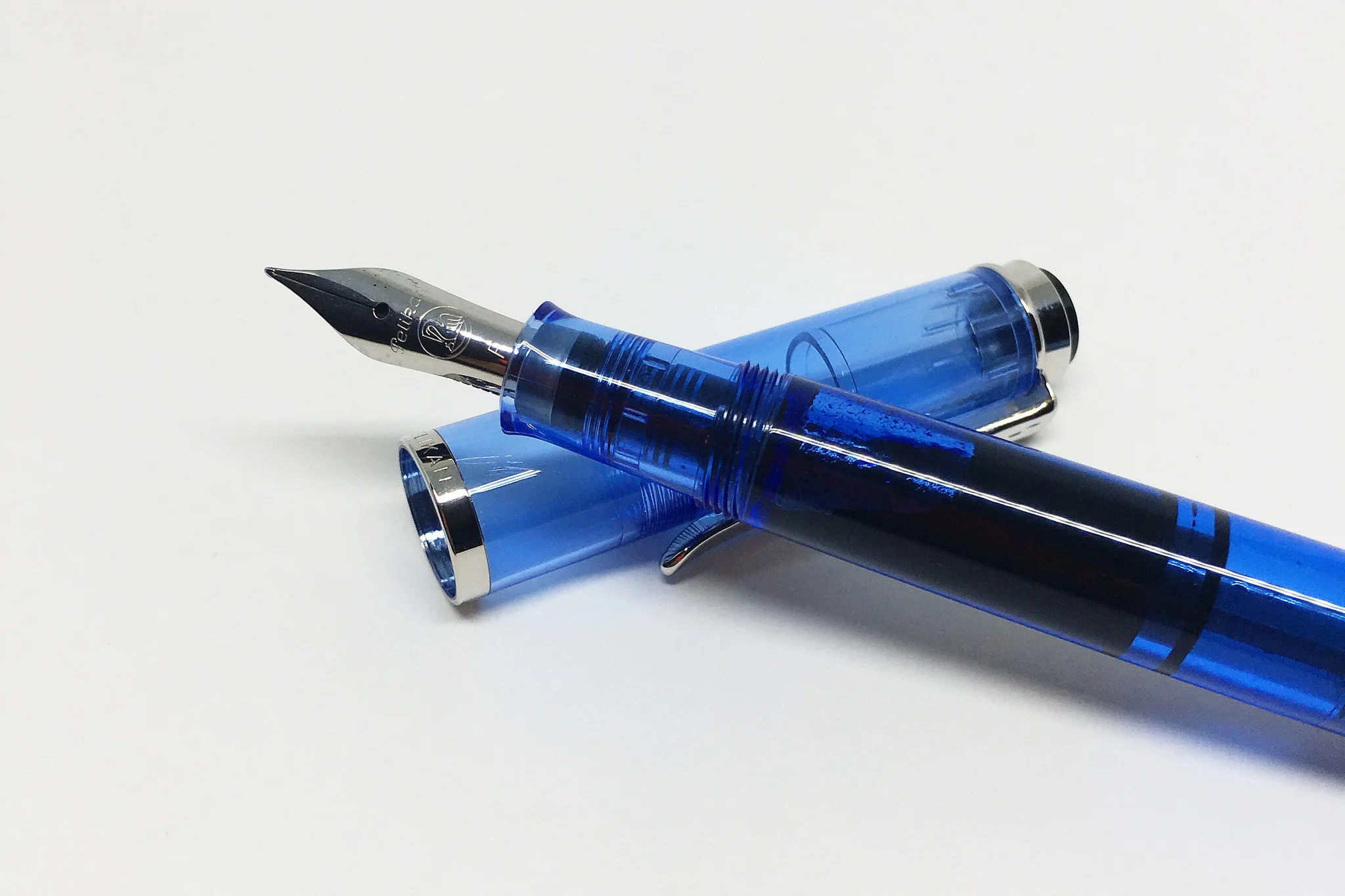 is a special edition piston-filling fountain pen featuring a transparent blue high-grade resin body and polished silver-toned (chromium-plated) trim. Originally launched years ago, it was re-released in 2016 with an updated chromium-plated cap ring, replacing the previous black version.
